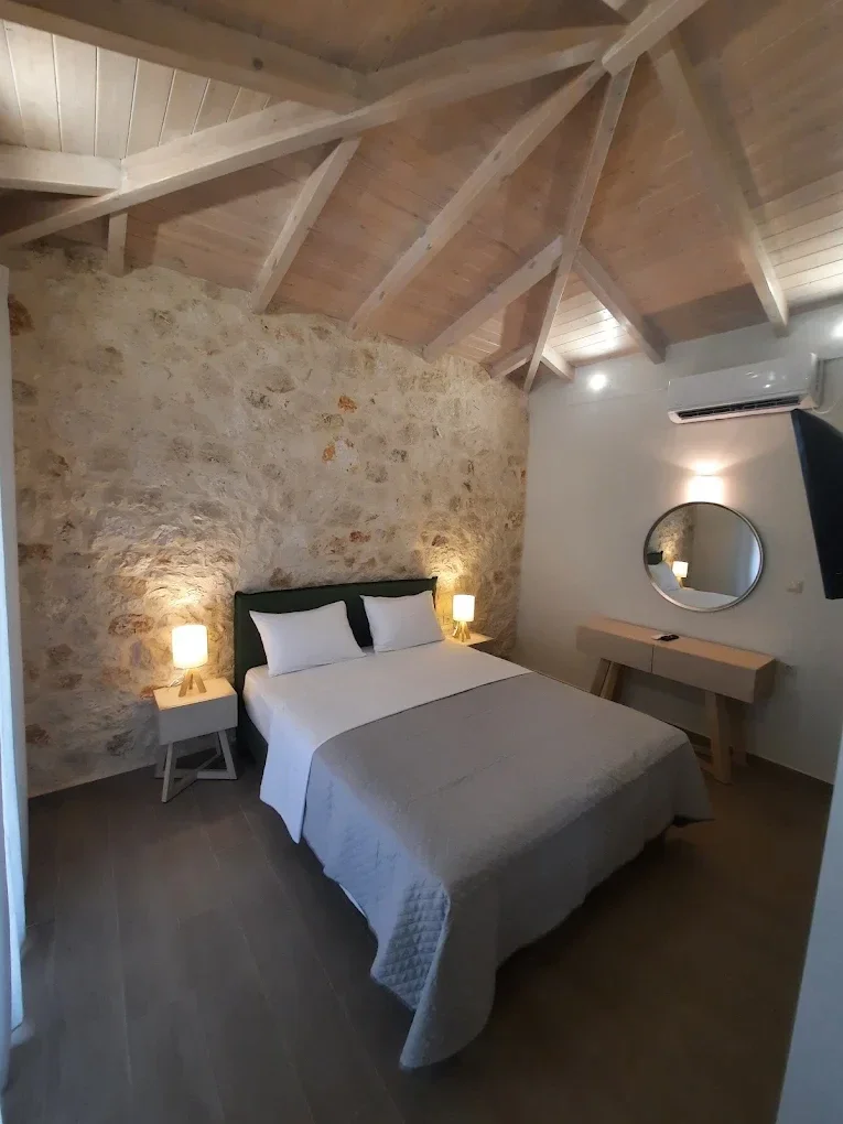 Experience a warm and modern atmosphere in Apartment 2, complete with a comfortable bedroom and a welcoming living space. Its prime location is a short walk to the sea and conveniently close to charming local tavernas and picturesque seaside walks in Lefkada. This apartment is ideal for guests who desire both peaceful tranquility and easy access to the vibrant local life, offering an authentic Greek holiday experience.